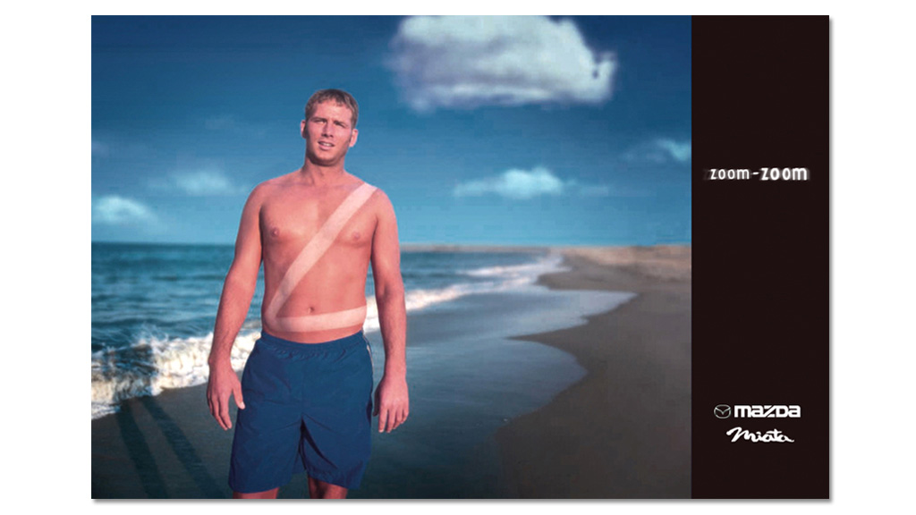 Highly acclaimed print ad that ran in the Sports Illustrated swim suit issue and went on to become a fixture in Mazda dealerships all across the country.